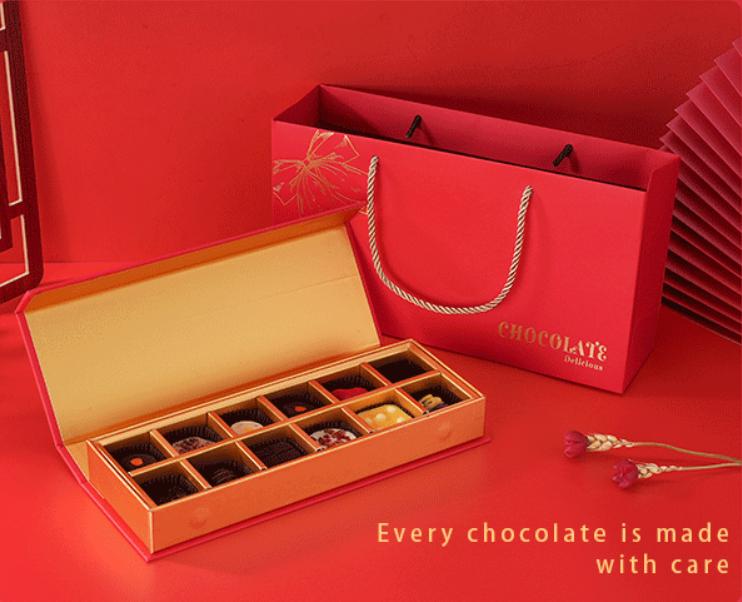 Xyoo Tshiab tab tom los, uas yog lub sijhawm zoo rau cov tub lag luam los nthuav tawm cov khoom tshiab thiab cov kev pabcuam tshiab los npaj rau lub caij so khoom noj khoom haus. Raws li kev xaiv khoom plig tshwj xeeb,chocolate khoom qab zib khoom plig thawvtshwj xeeb tshaj yog nyob rau lub sijhawm no. Rau cov tub lag luam, yuav ua li cas kho qhov tshwj xeeb, muaj tswv yim thiab qhov muag pom lub thawv ntim khoom qab zib chocolate yuav ua haujlwm tseem ceeb. Nyob rau hauv tsab xov xwm no, peb yuav tshawb xyuas yuav ua li cas rau customize xws li ib tugchocolate khoom qab zib khoom plig box.